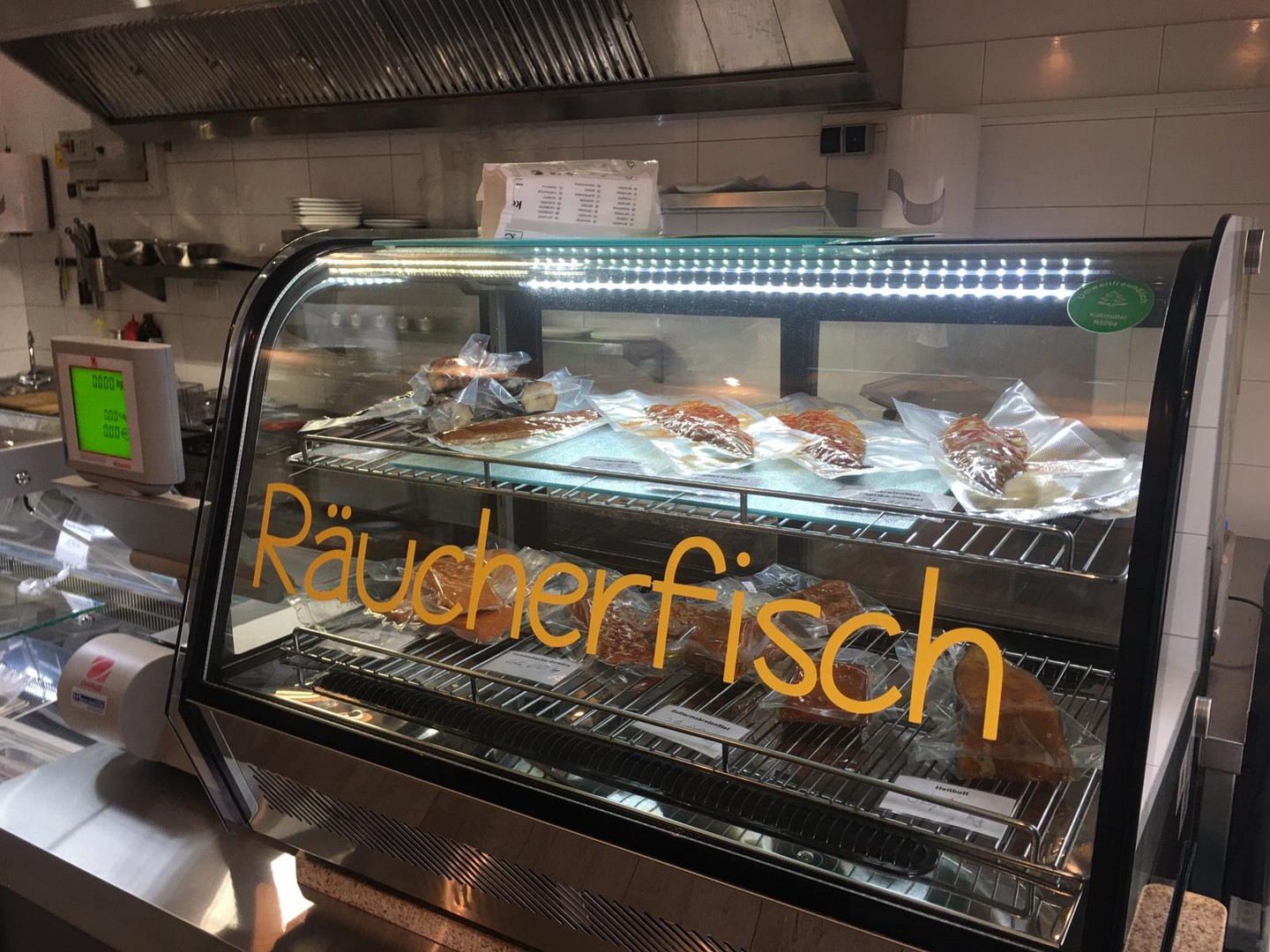 In unserem Fischimbiss können Sie zudem geräucherten Fisch kaufen oder ganz wie in einem Fischladen
